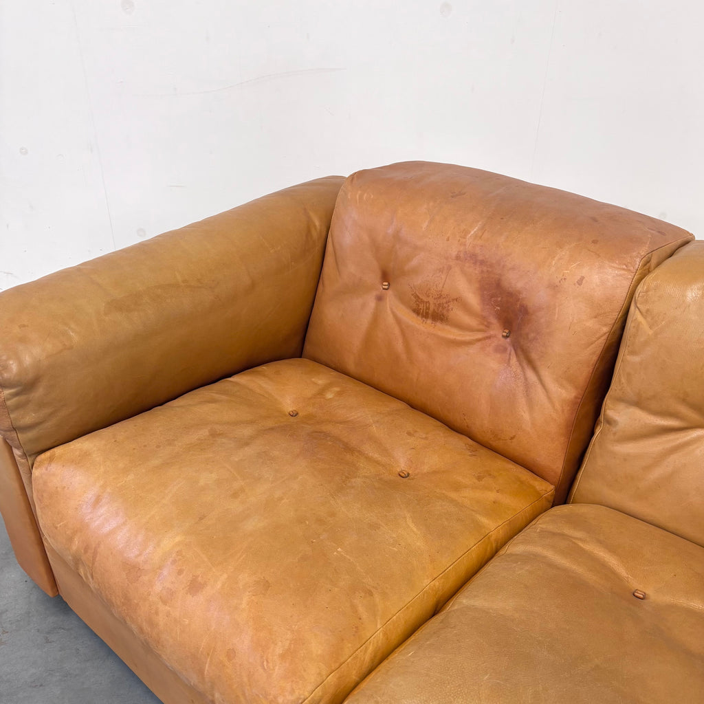 Sofa is in very good vintage condition. No damages and the leather is thick, smooth and soft. Comes with patina, like spots and discolorations. See pictures.