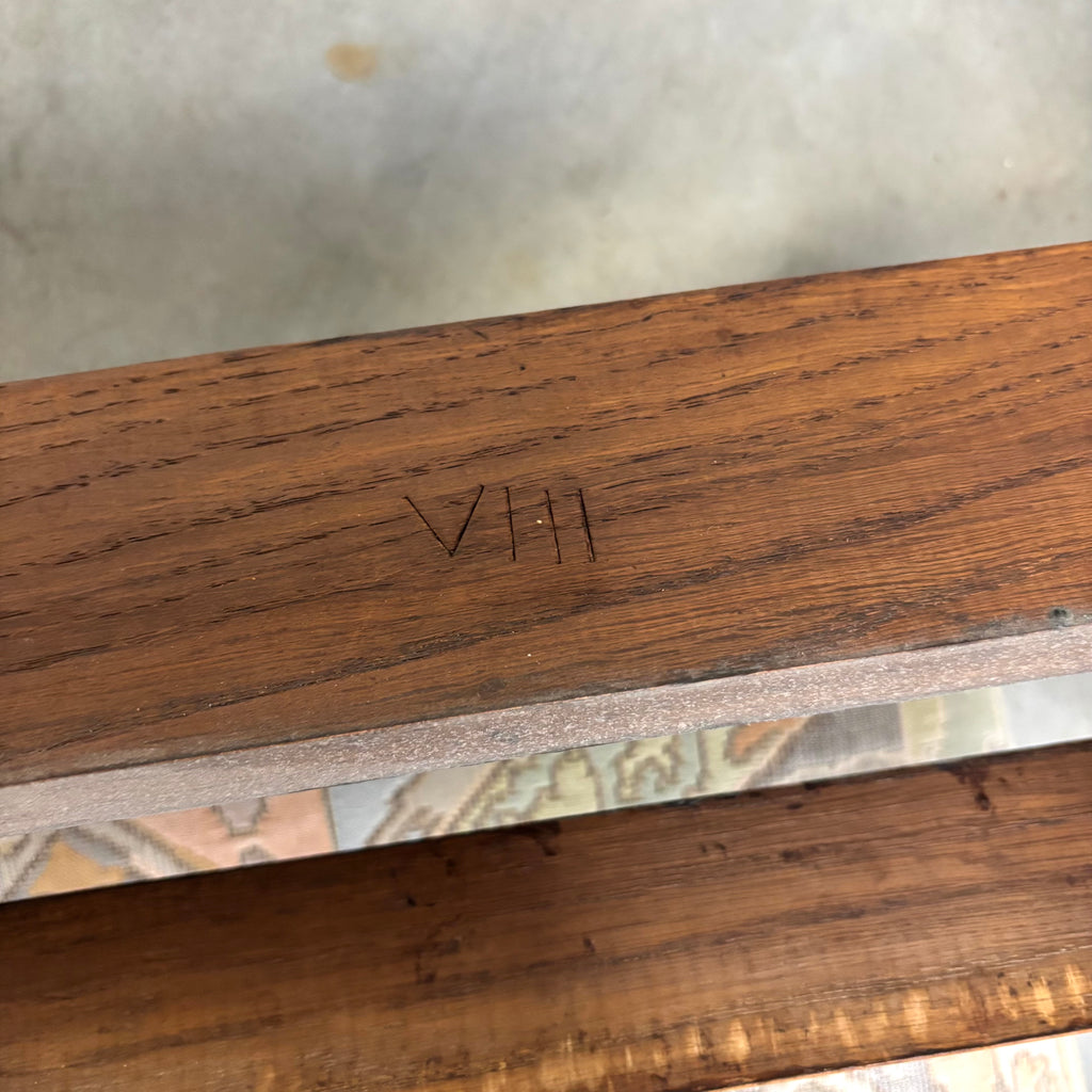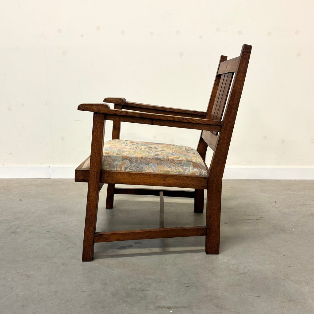 Oak frame with typical straight shapes of the 'Hague School'. Fabric upholstered seat.