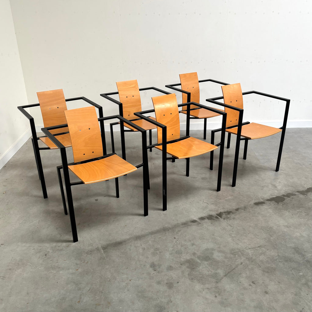 Set of six Memphis style Trix armchairs by K.F. Förster for KFF Design. 1980s German design.