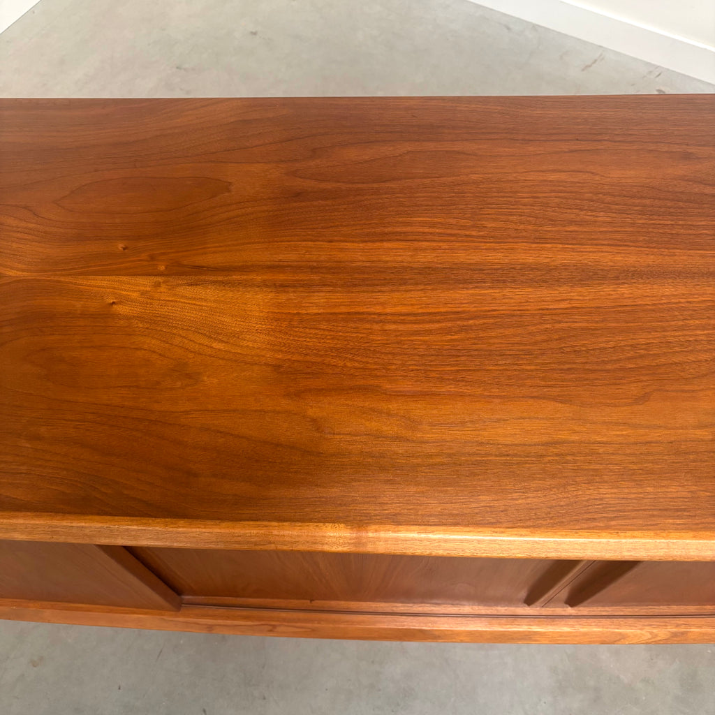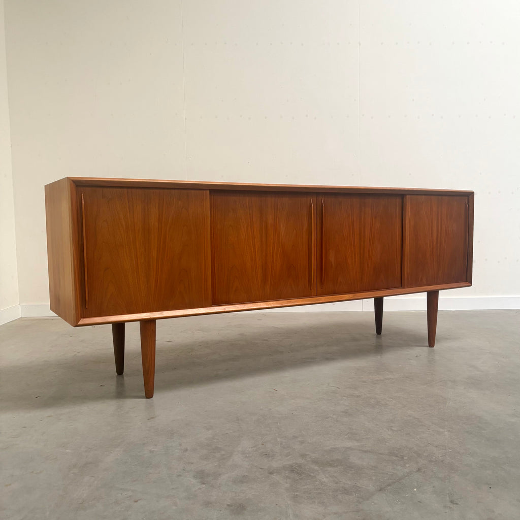 Teak veneer with four slide doors and four drawers.
