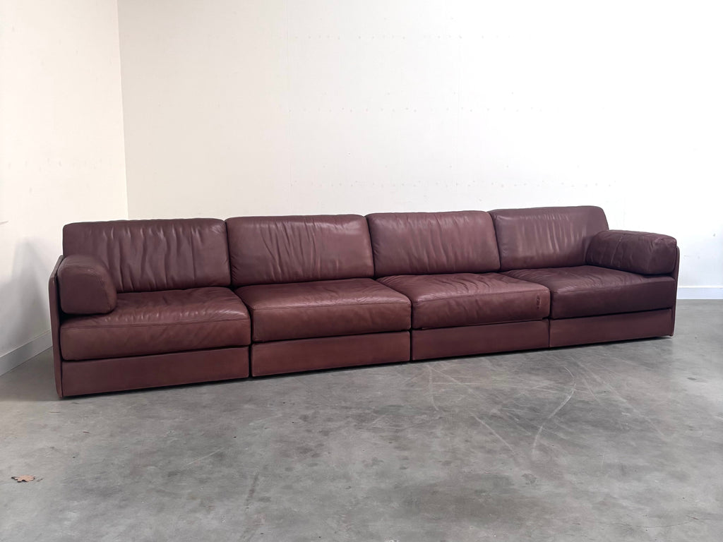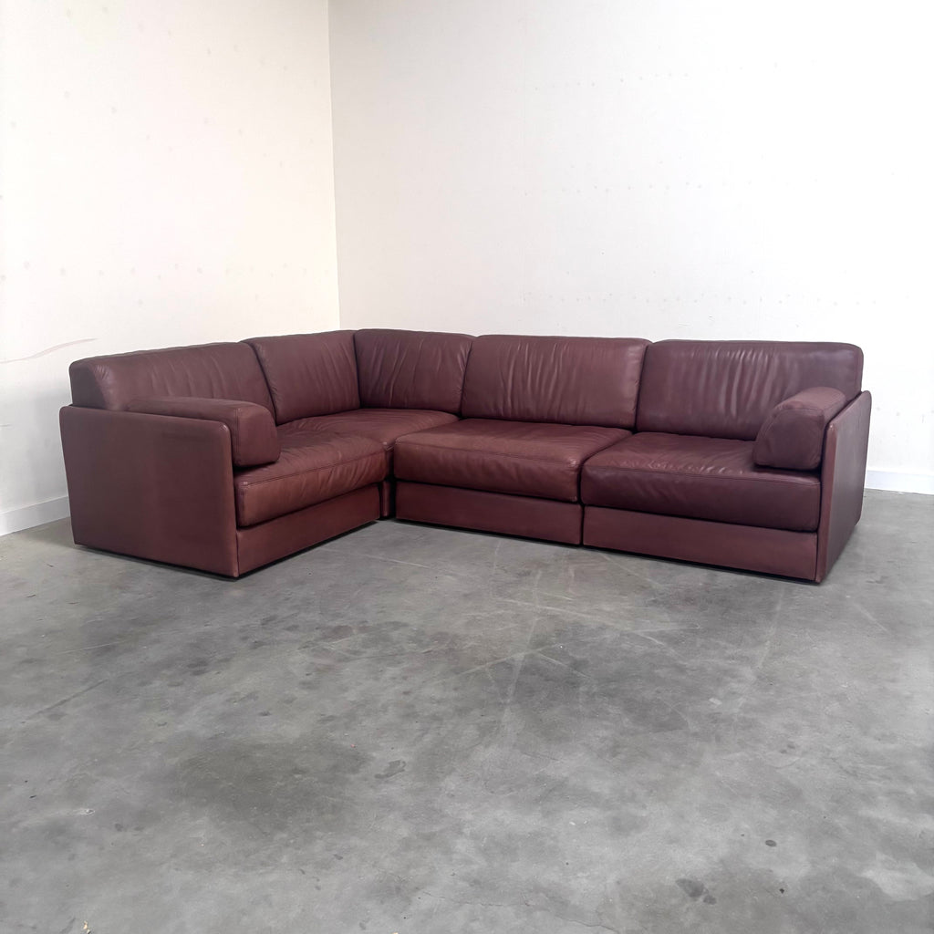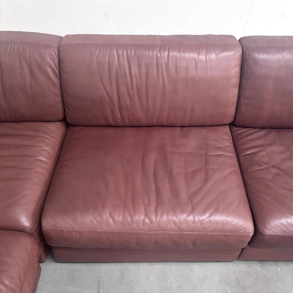 Brown leather modular sofa by De Sede; DS76, 1970s (corner)