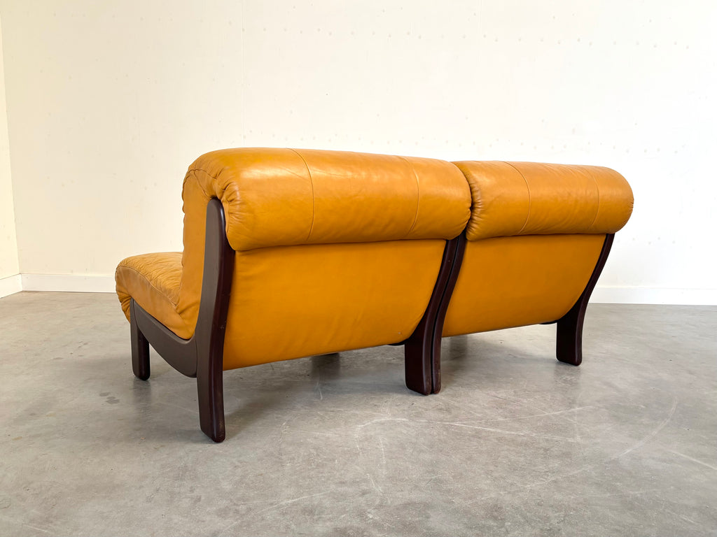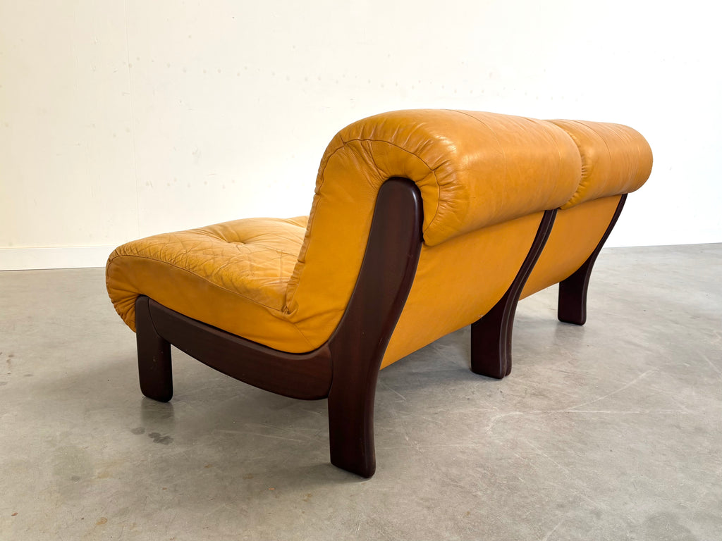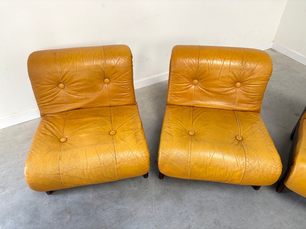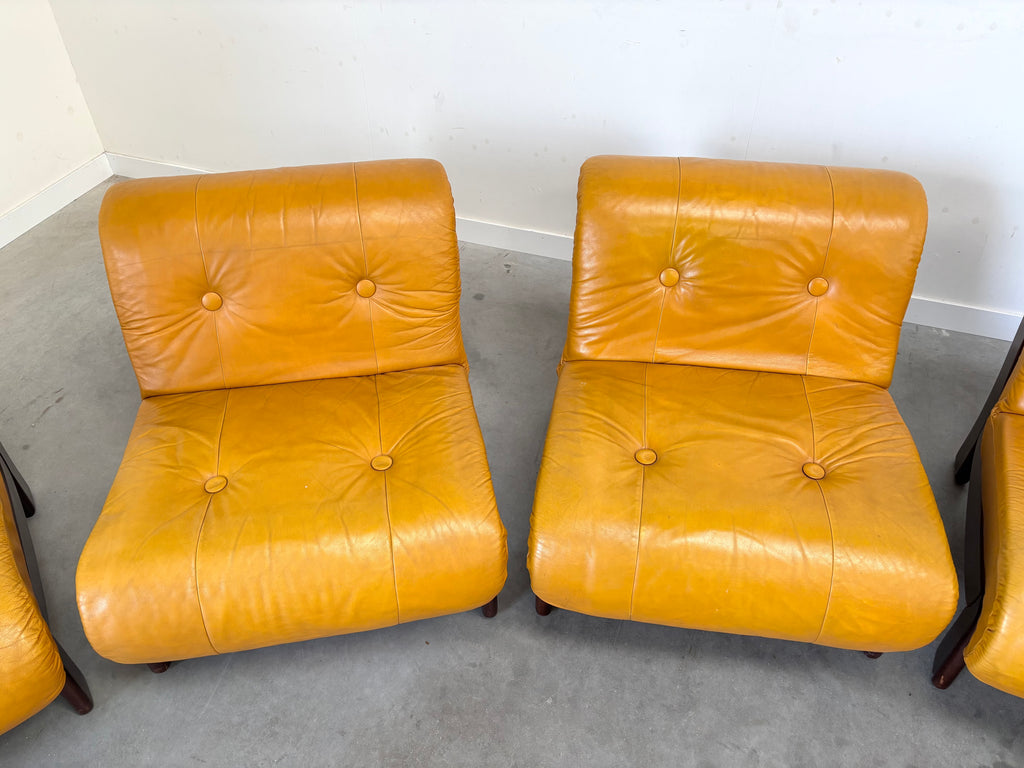 6 Chairs made of wooden frames with upholstery in smooth cognac / yellow leather.